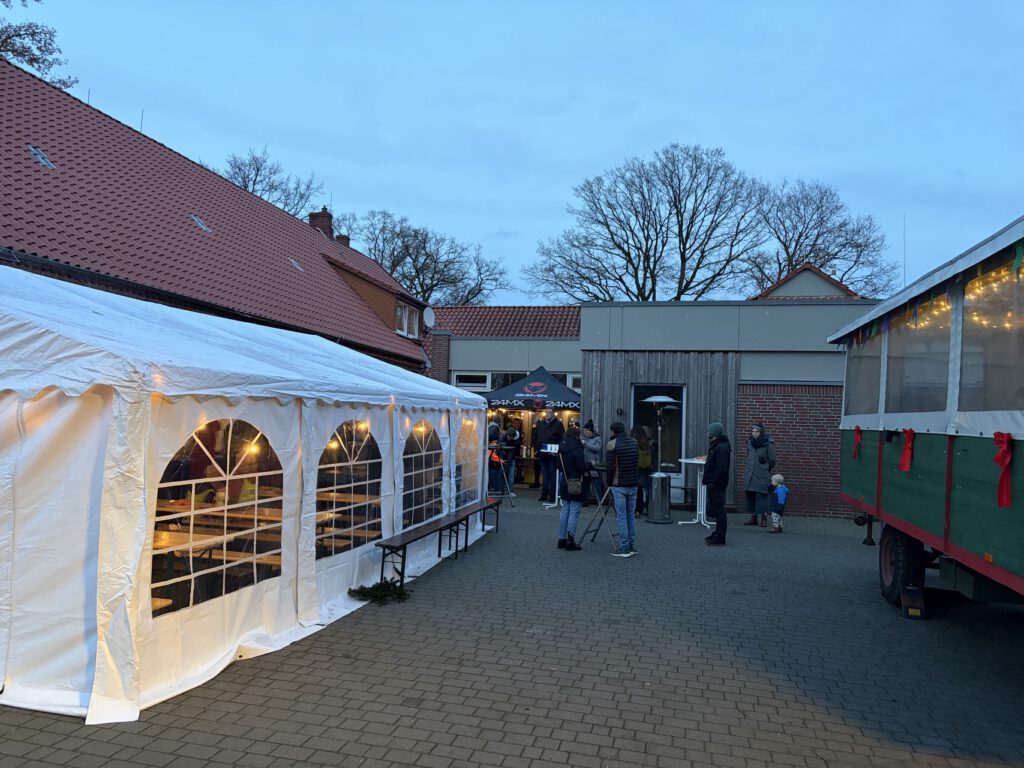 Im Anschluss wurde in einem beheizten Zelt weitergefeiert. Für das leibliche Wohl war bestens gesorgt: Waffeln, Würstchen und Pommes fanden großen Anklang, ebenso wie das reichhaltige Getränkeangebot. Während sich die Erwachsenen austauschten, haben die Kinder die Möglichkeiten genutzt, sich sich auf dem Spielplatz oder im eigens aufgestellten Kremser-Wagen zu vergnügen.